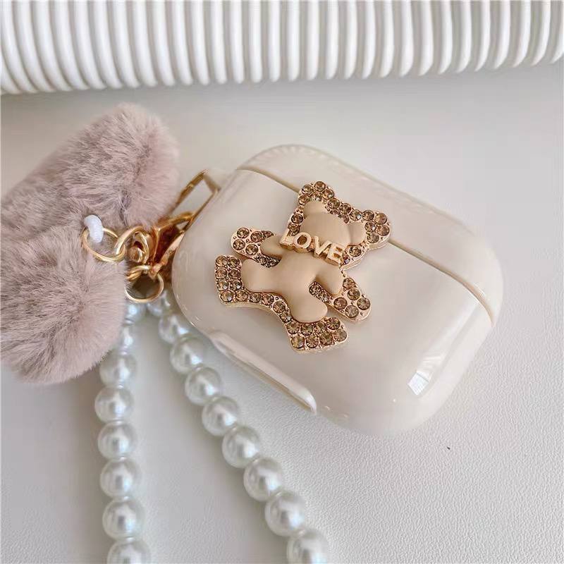 ایرپاد LOVE خرسی همراه آویز مروارید و پامA000223