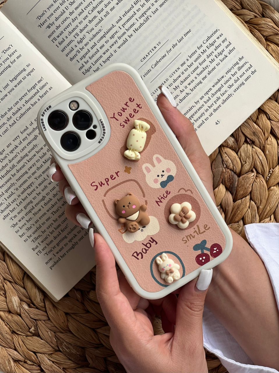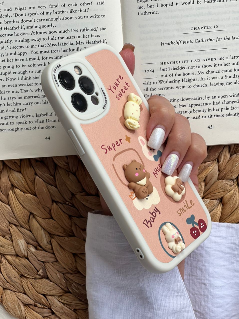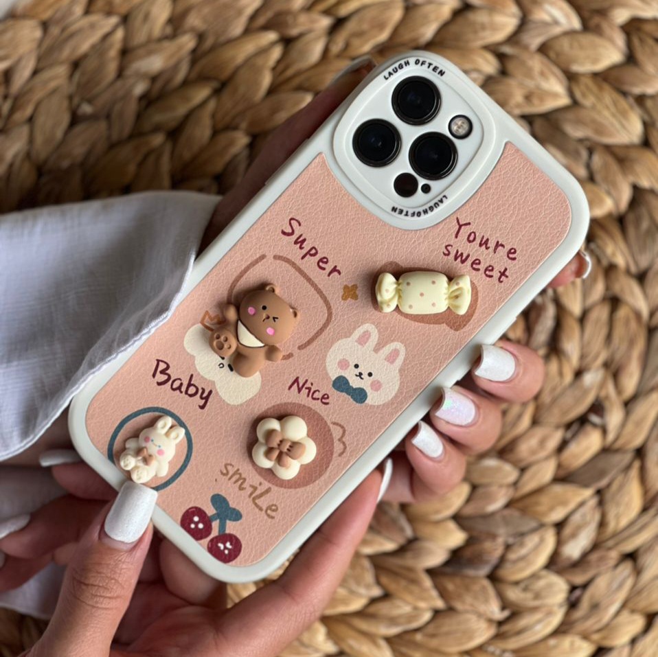 قاب موبایل آیفون خرس شکلات پیچ محافظ لنزدار C000903