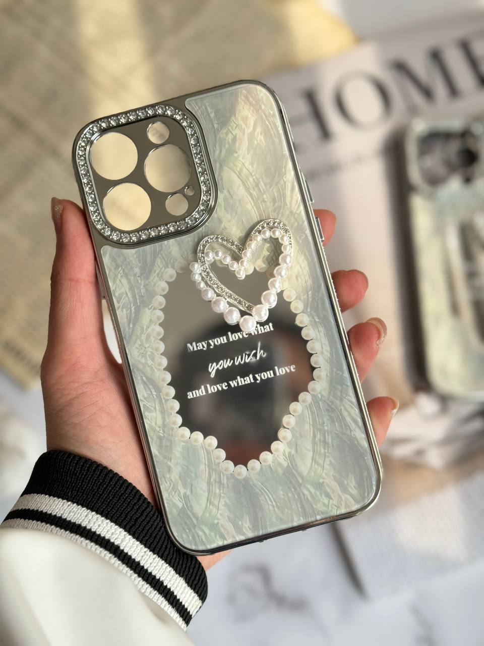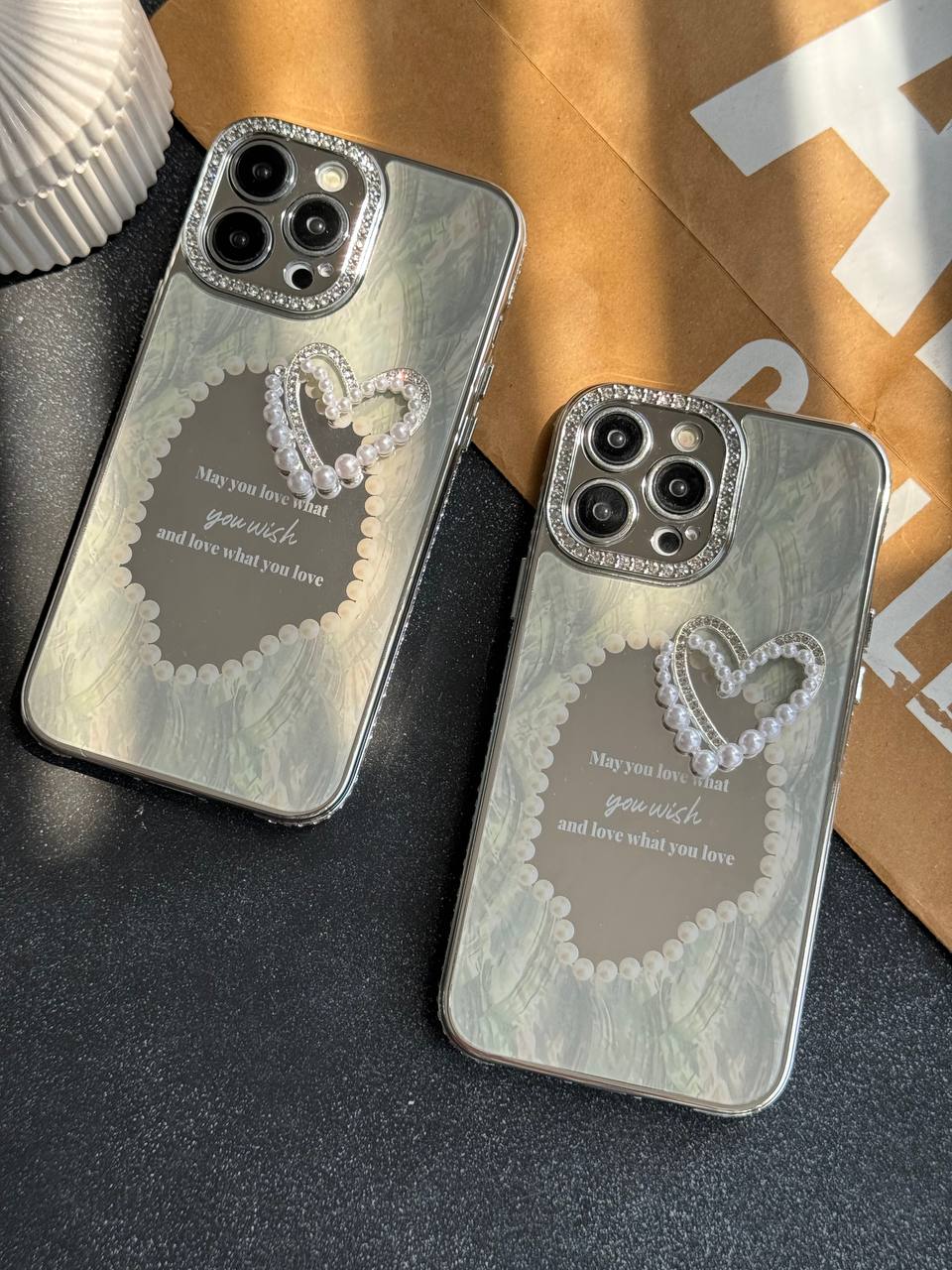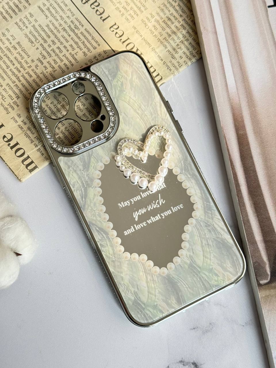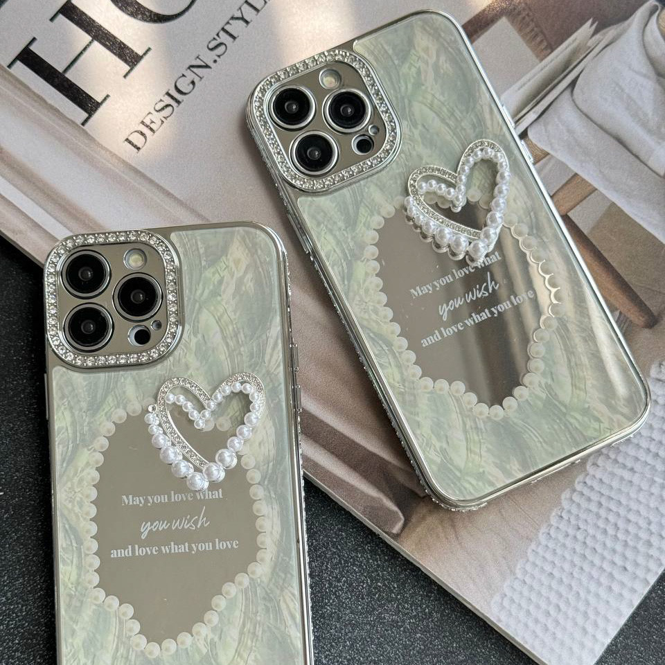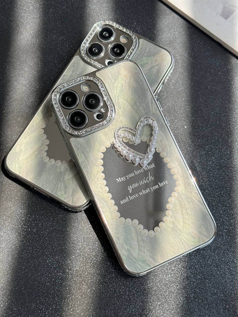 قاب موبایل آیفون قلب رمانتیک آیینه ای نگین دار C005215