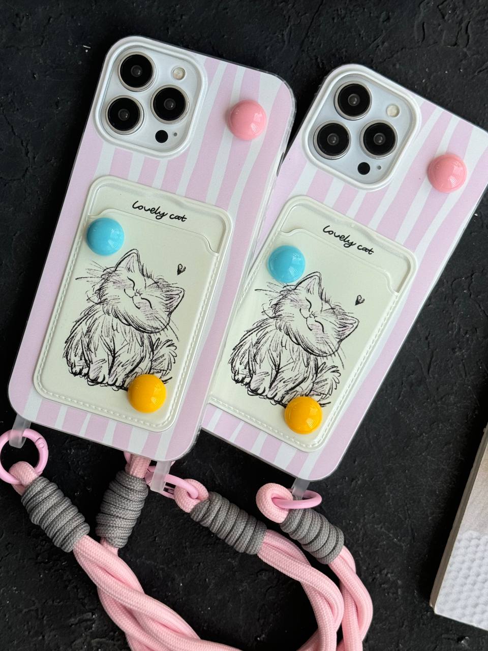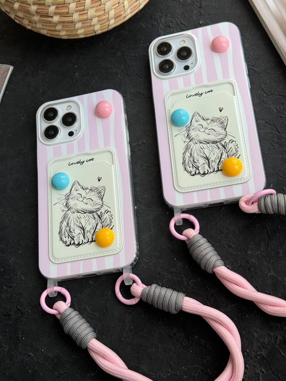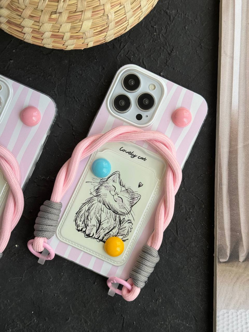 قاب موبایل آیفون گربه نقاشی لاولی جاکارتی بندست C005666