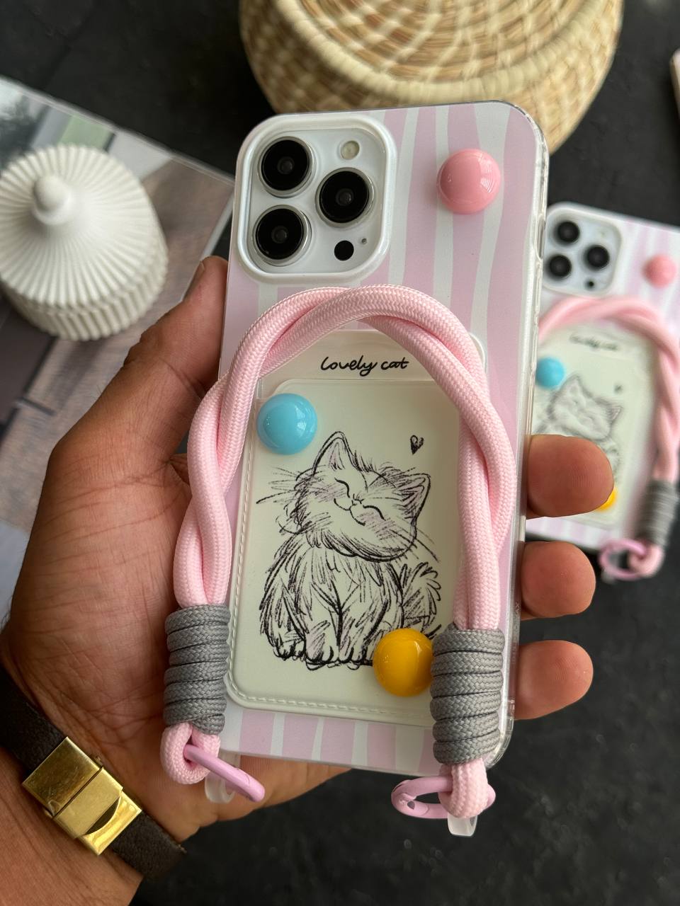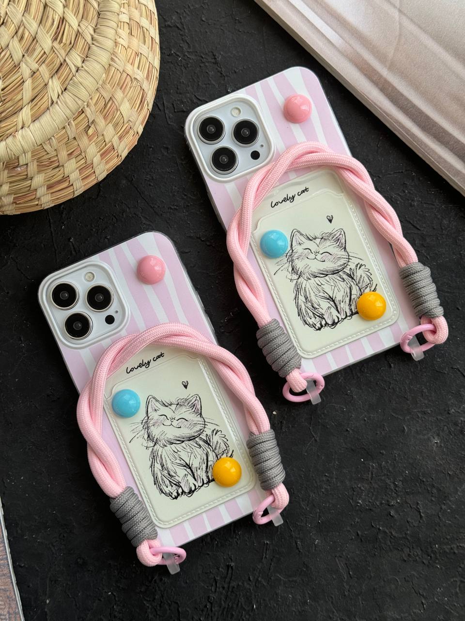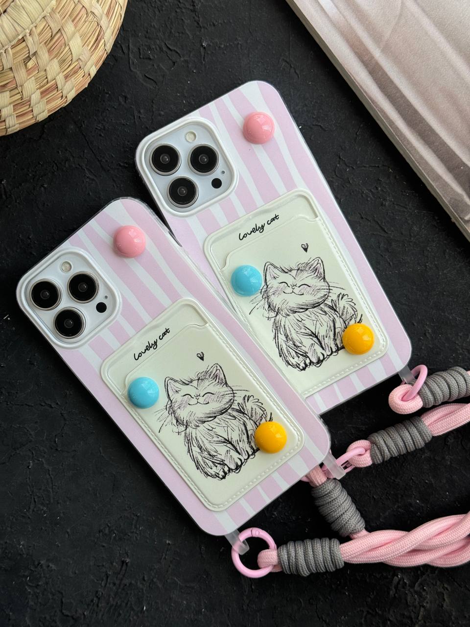 قاب موبایل آیفون گربه نقاشی لاولی جاکارتی بندست C005666