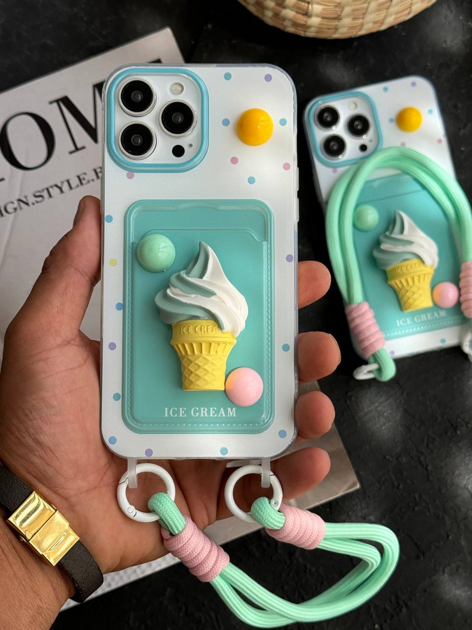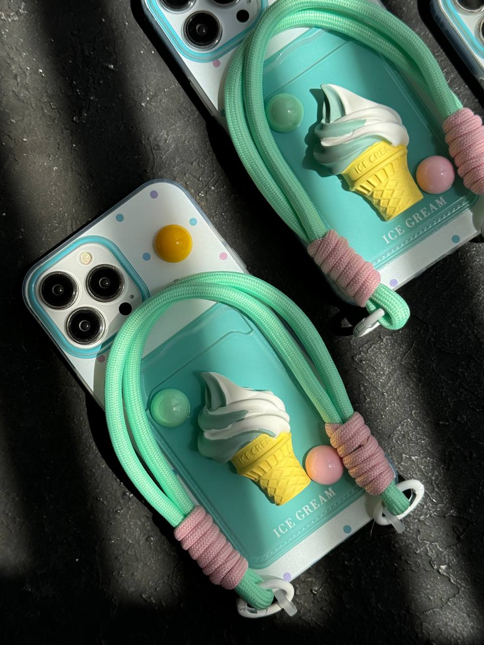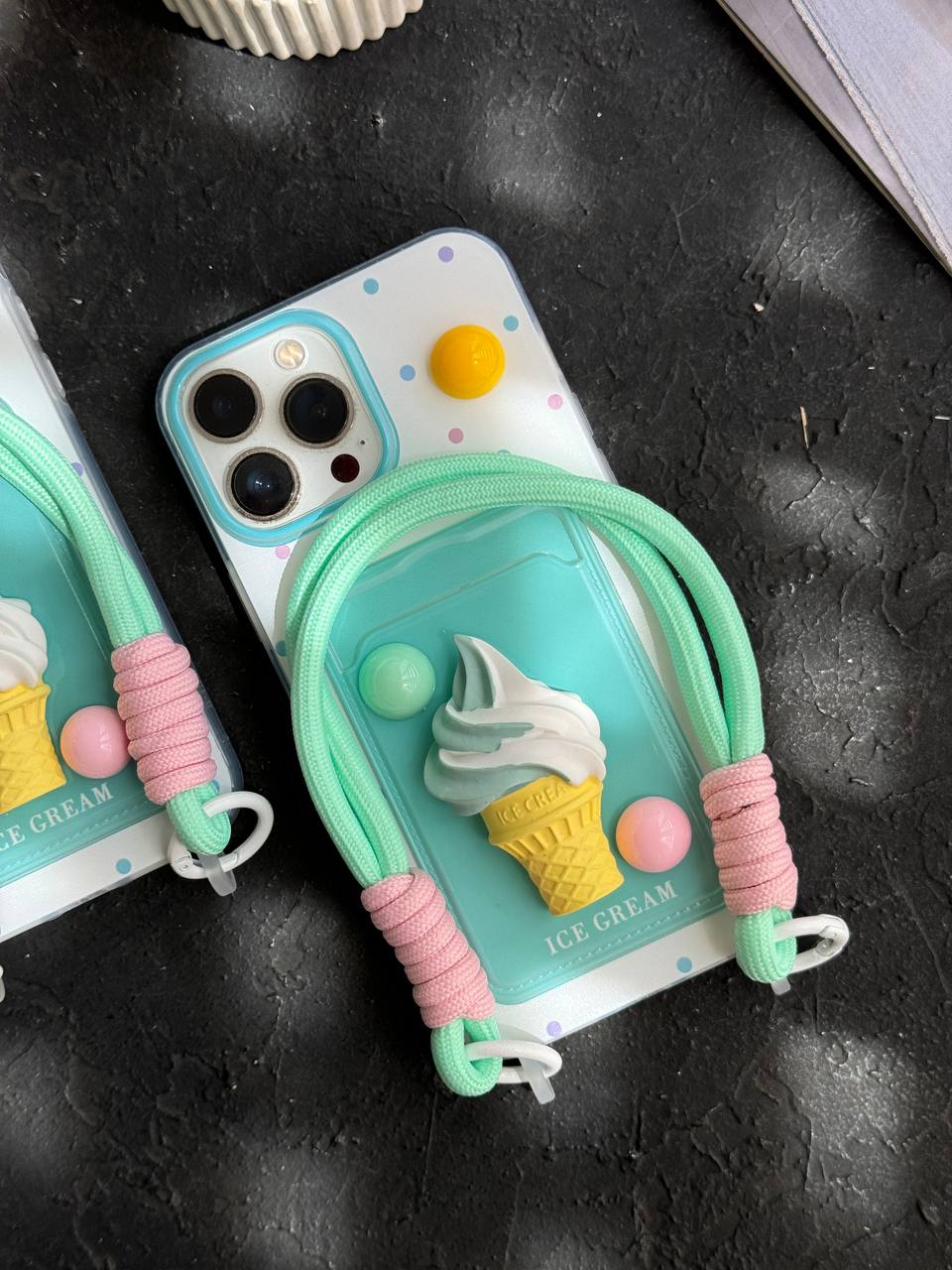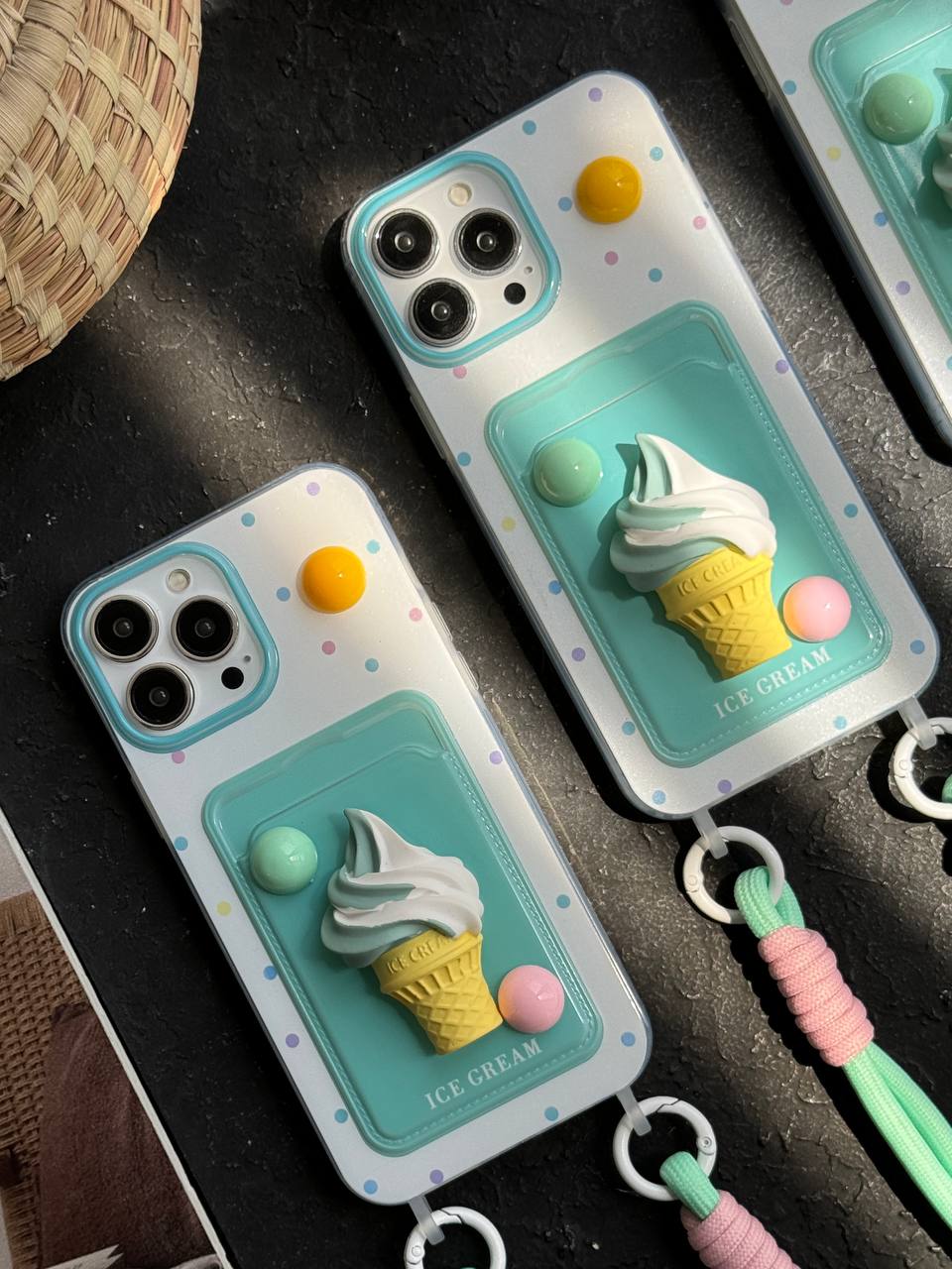 قاب موبایل آیفون بستنی قیفی دورنگ جاکارتی بندستC005681