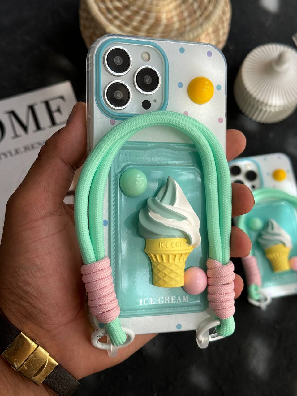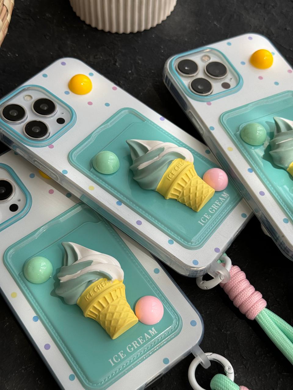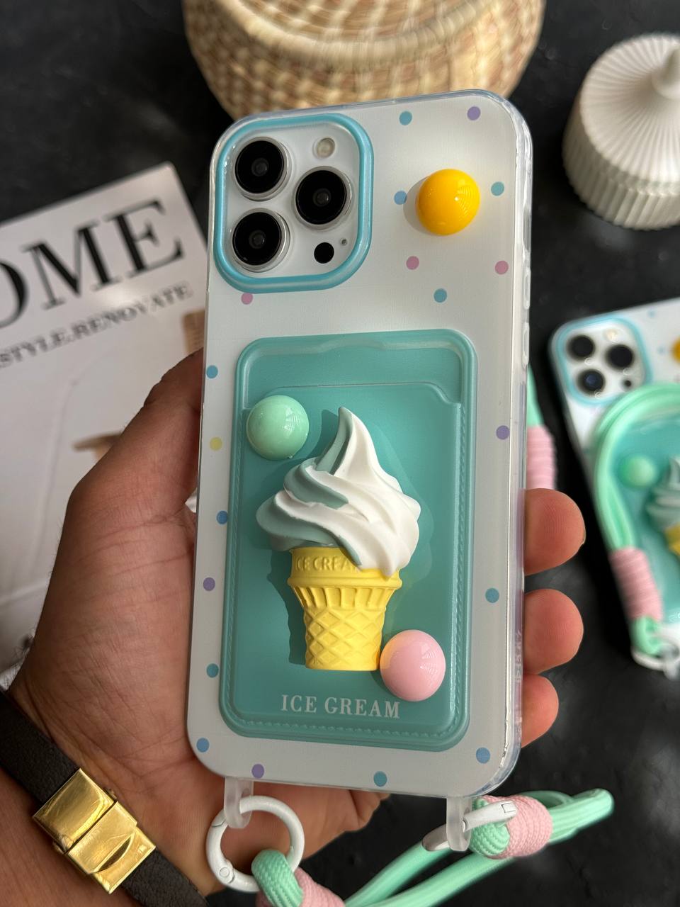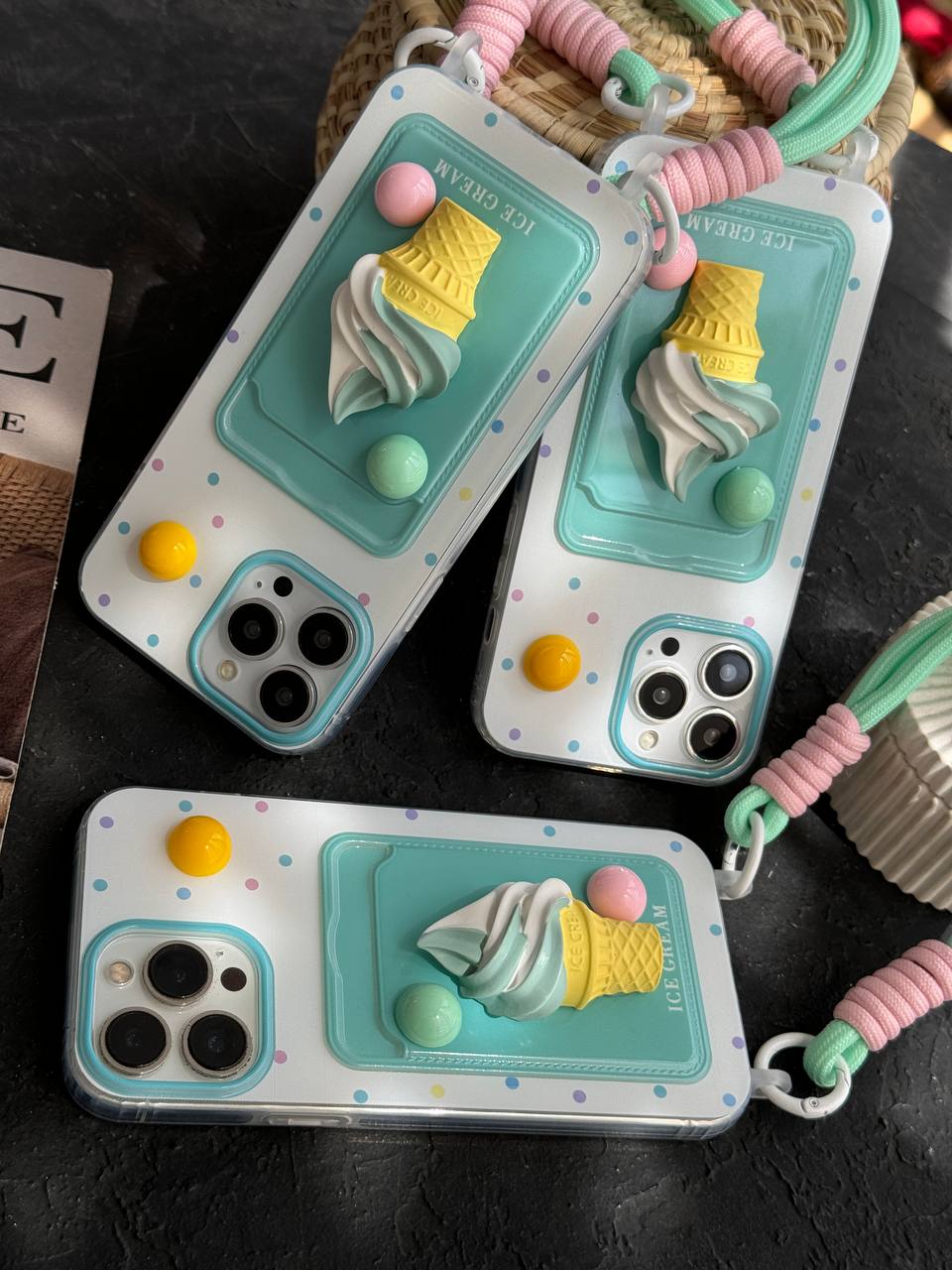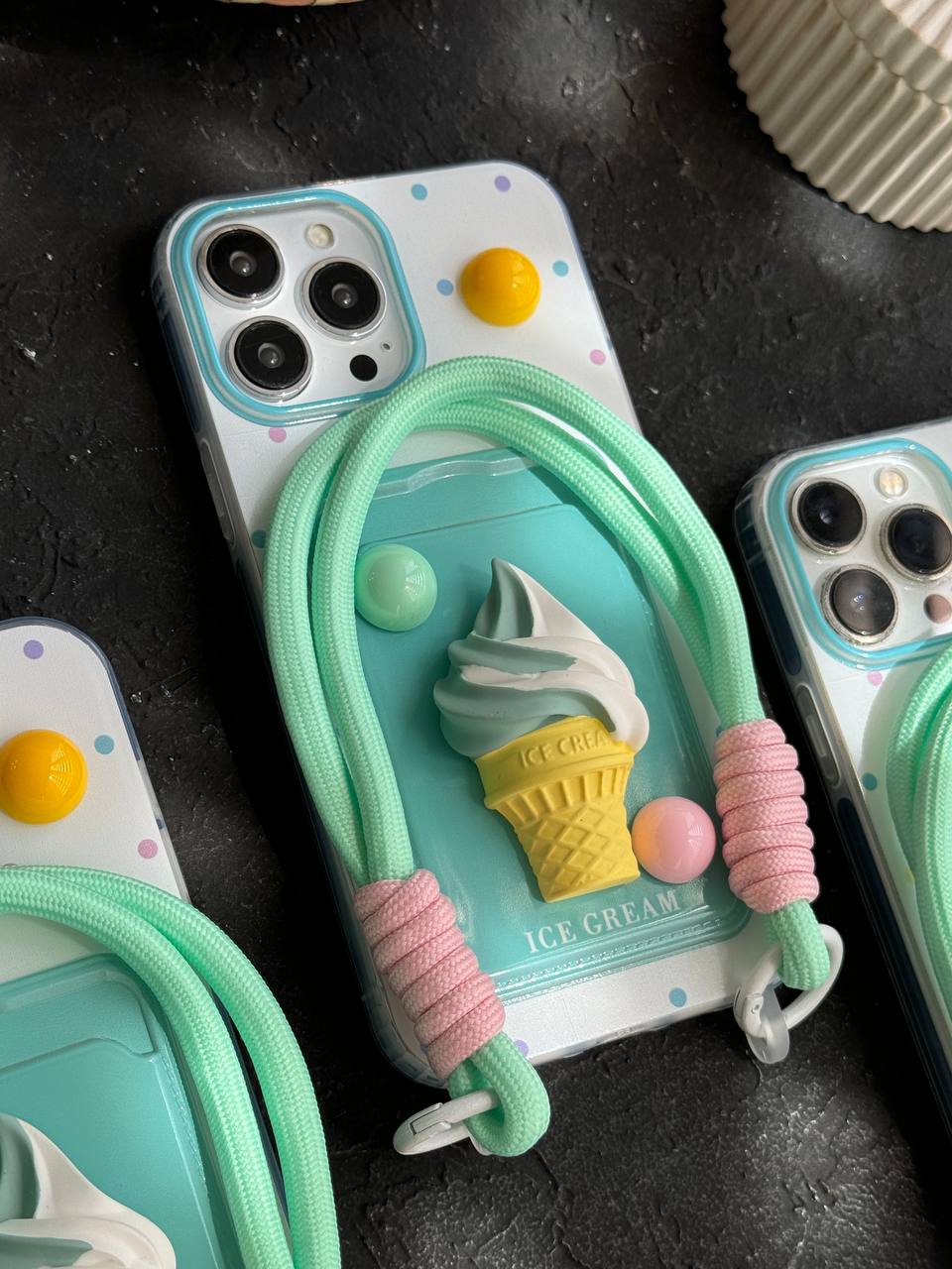قاب موبایل آیفون بستنی قیفی دورنگ جاکارتی بندستC005681