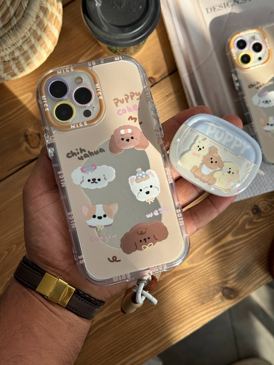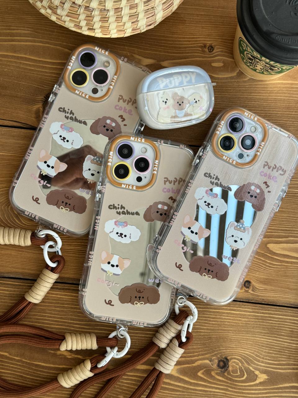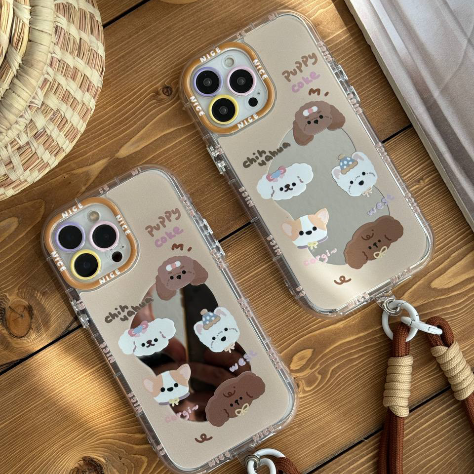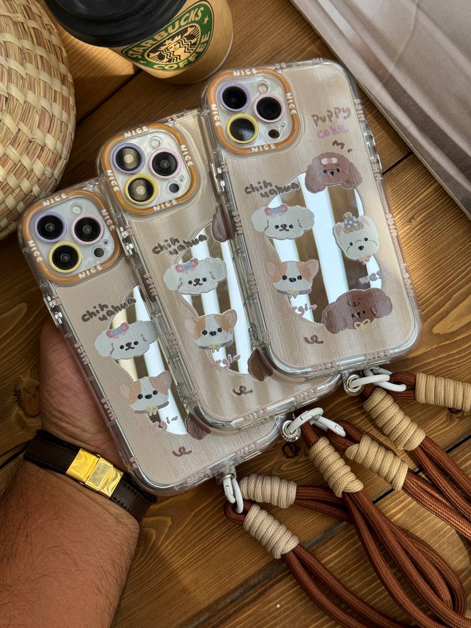 قاب موبایل آیفون سگ پاپی شکلاتی آیینه ای بندکوتاهC005833