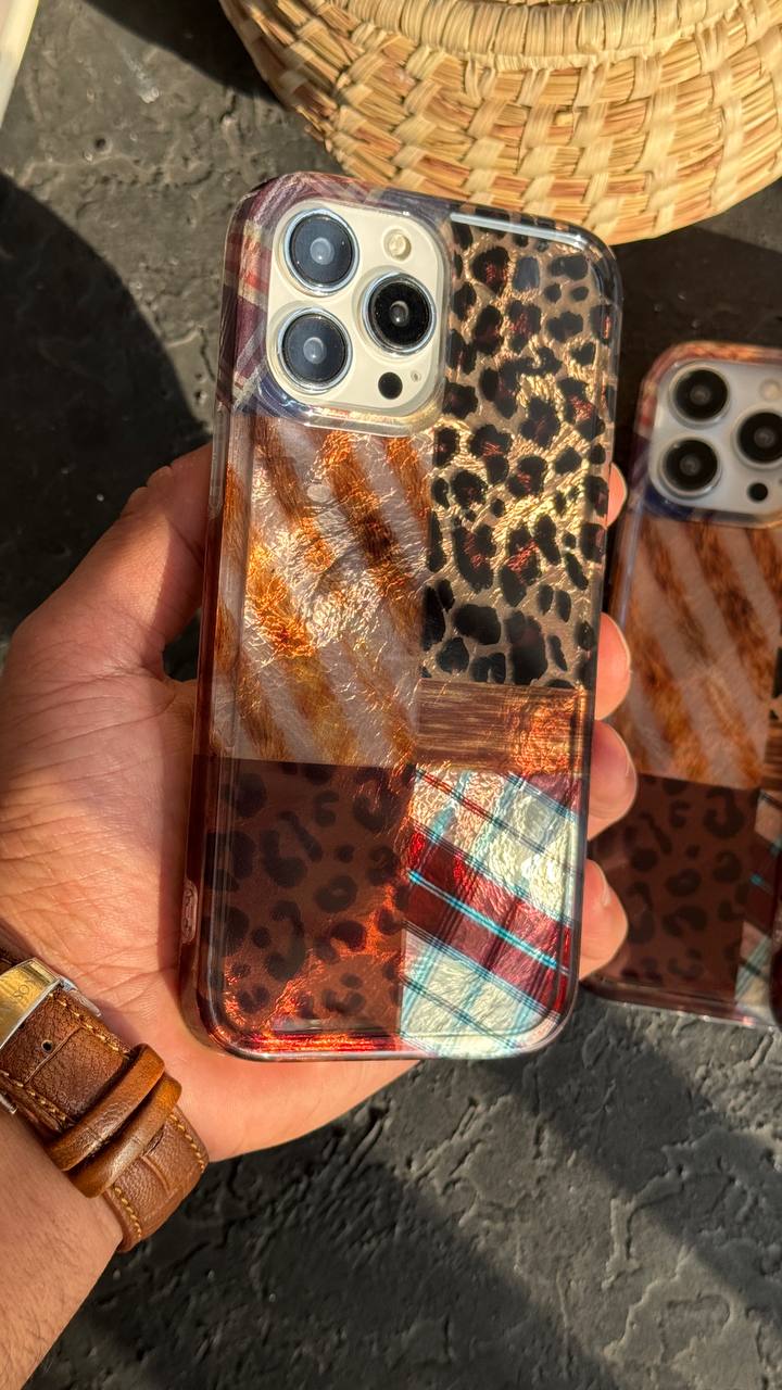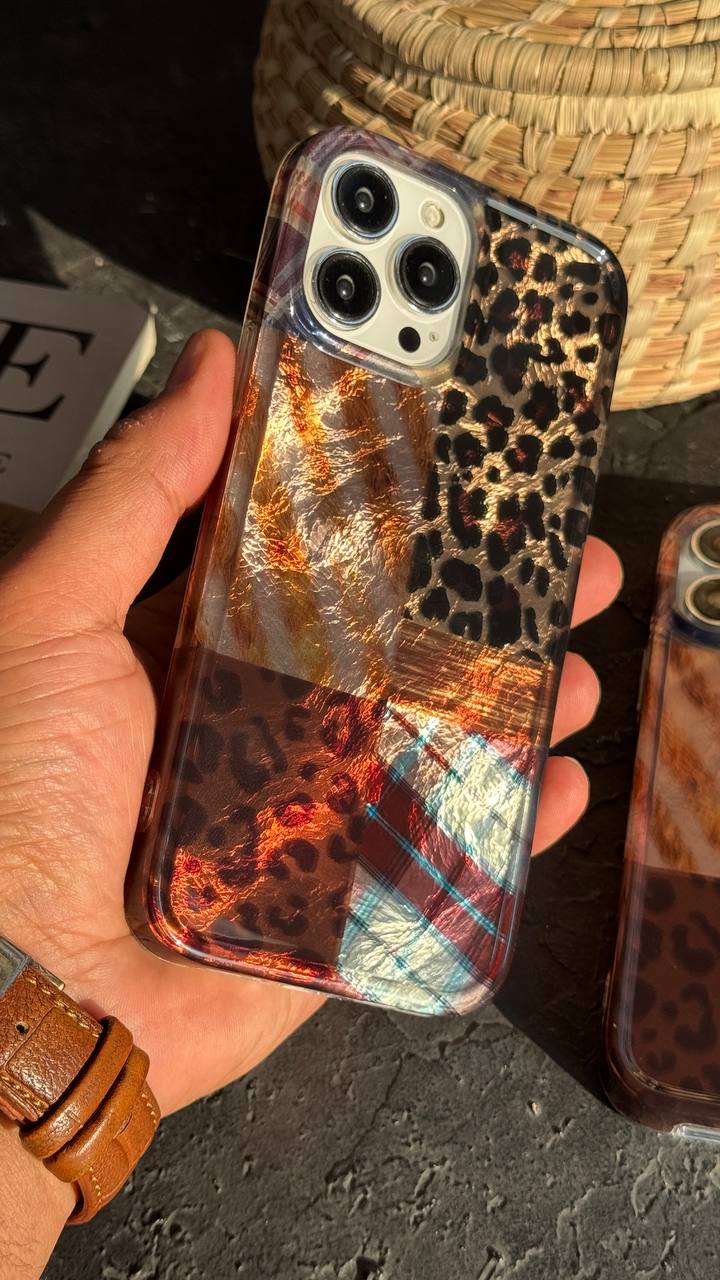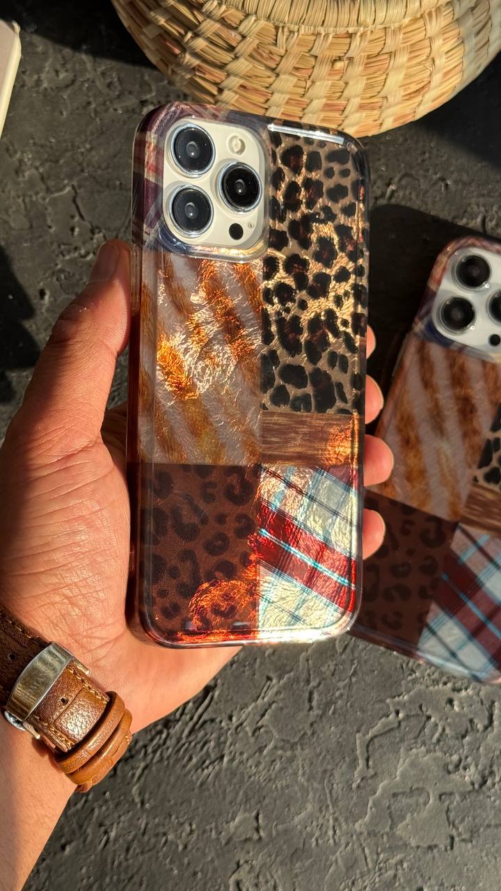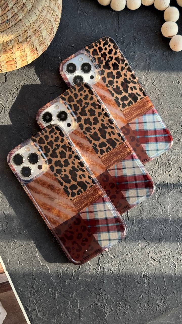 قاب موبایل آیفون پلنگی چهارخونه بافتنیC006020