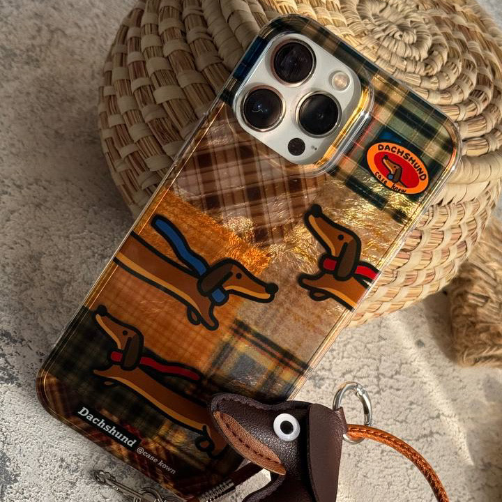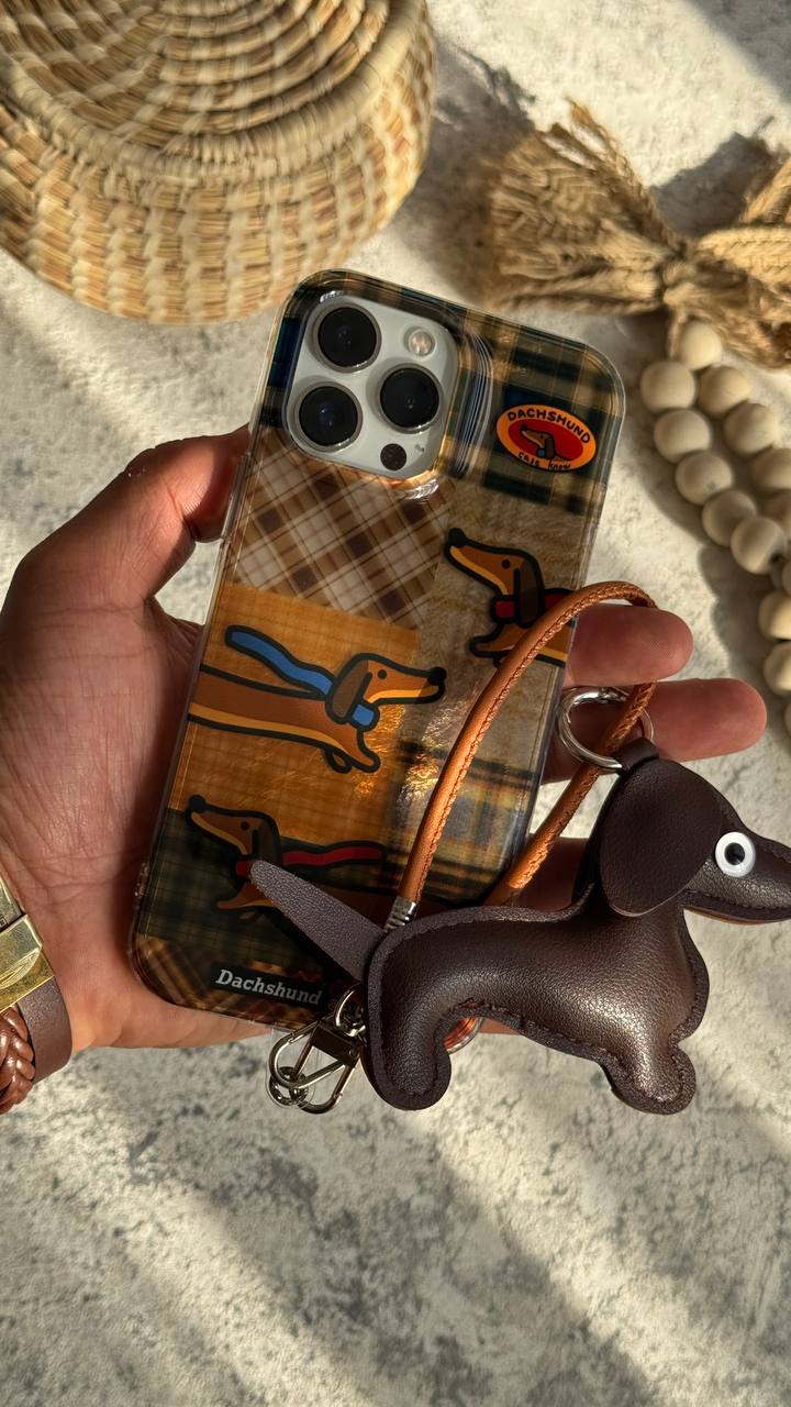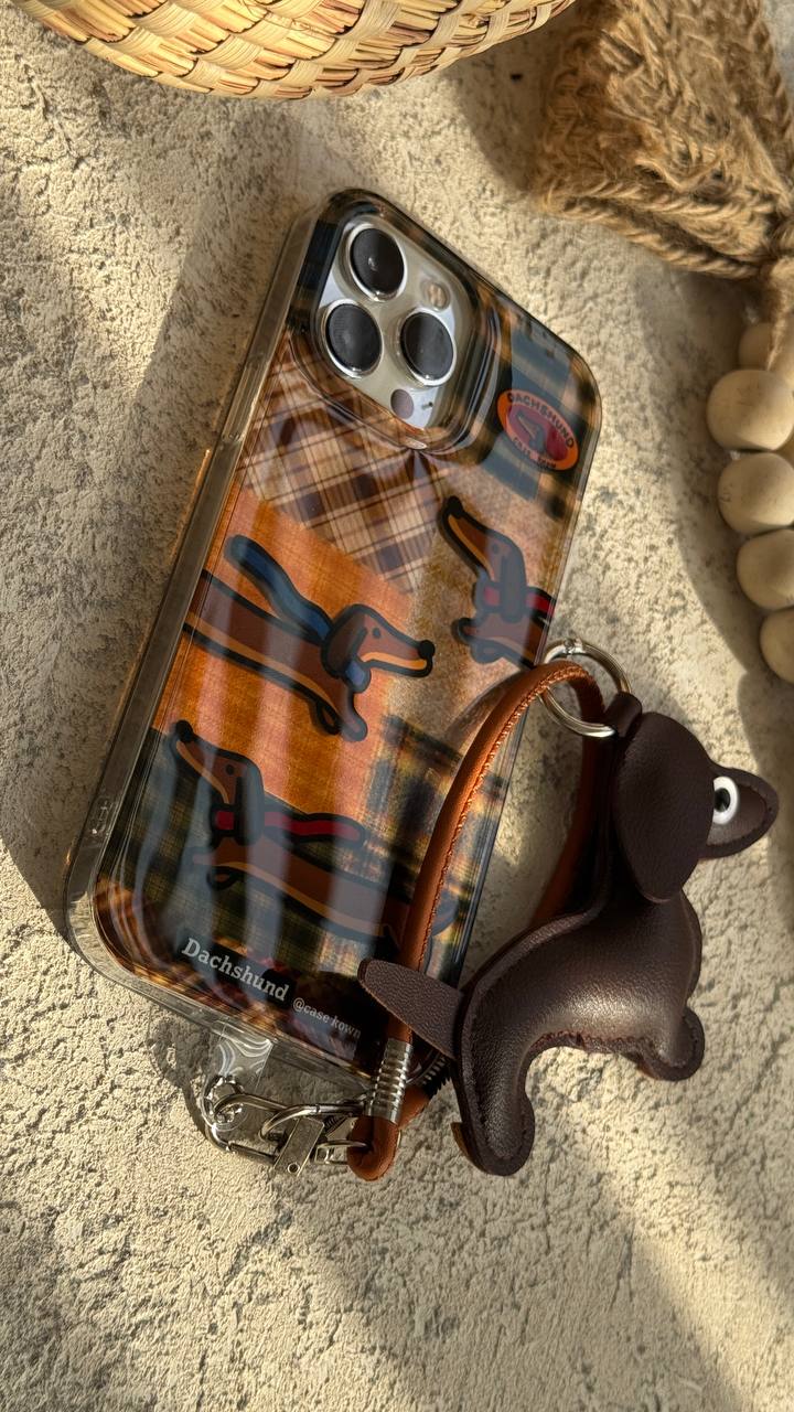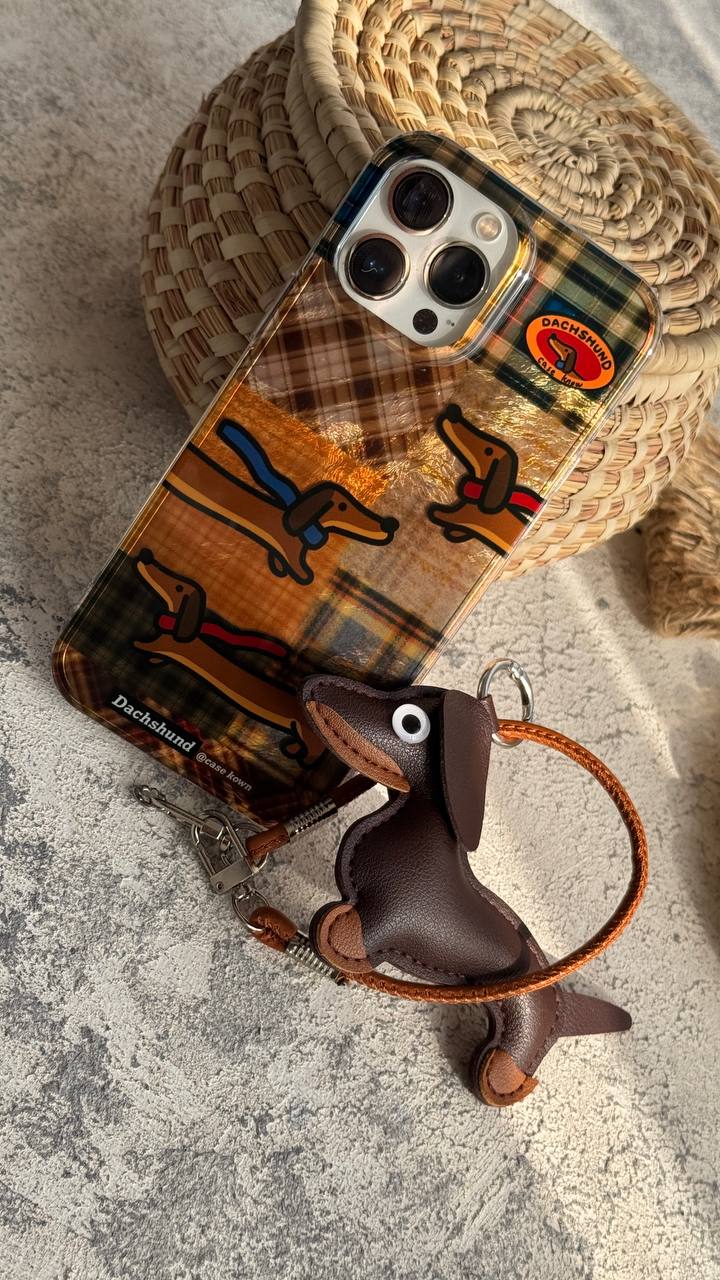قاب موبایل آیفون سگ چرمی داکس هوند چهارخونه سه بعدی + بندستC006033