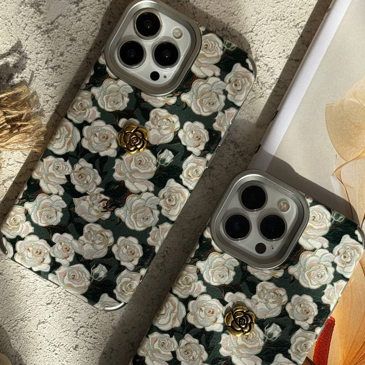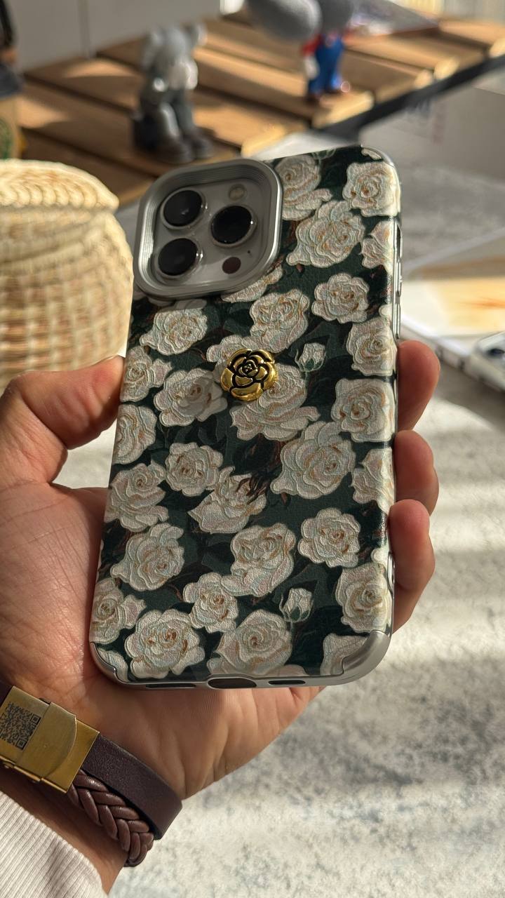 قاب موبایل آیفون گل رز مخمل سبزC006062