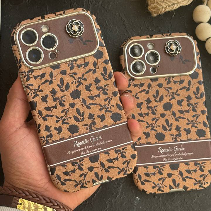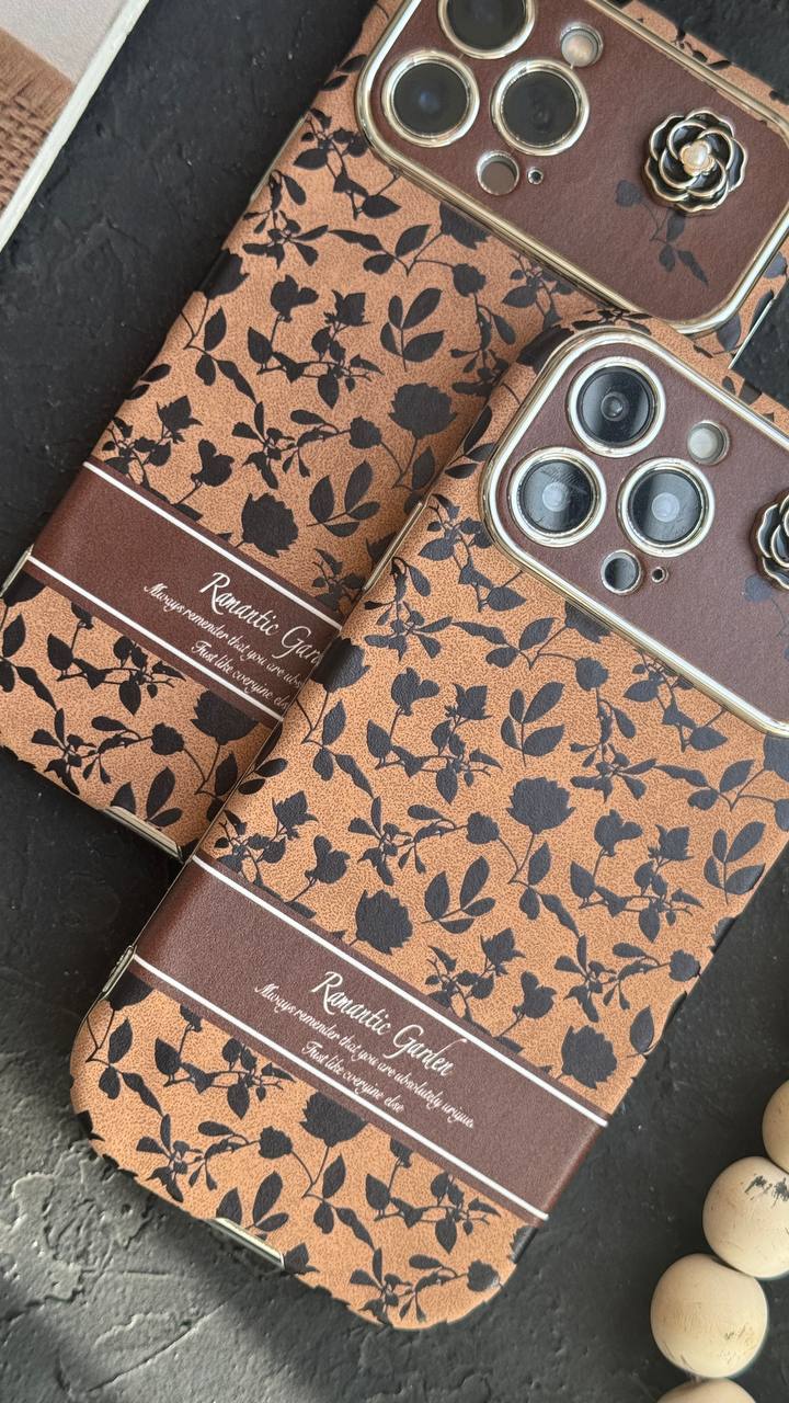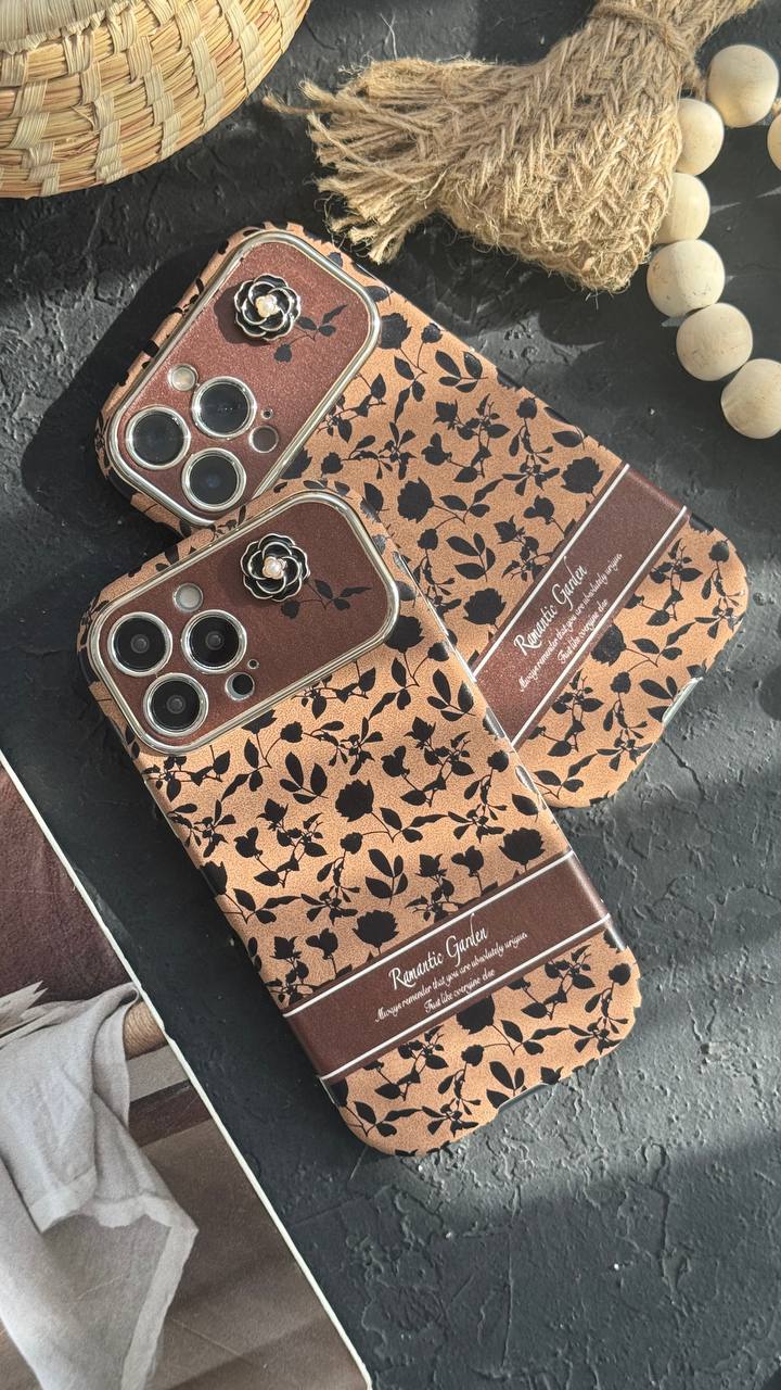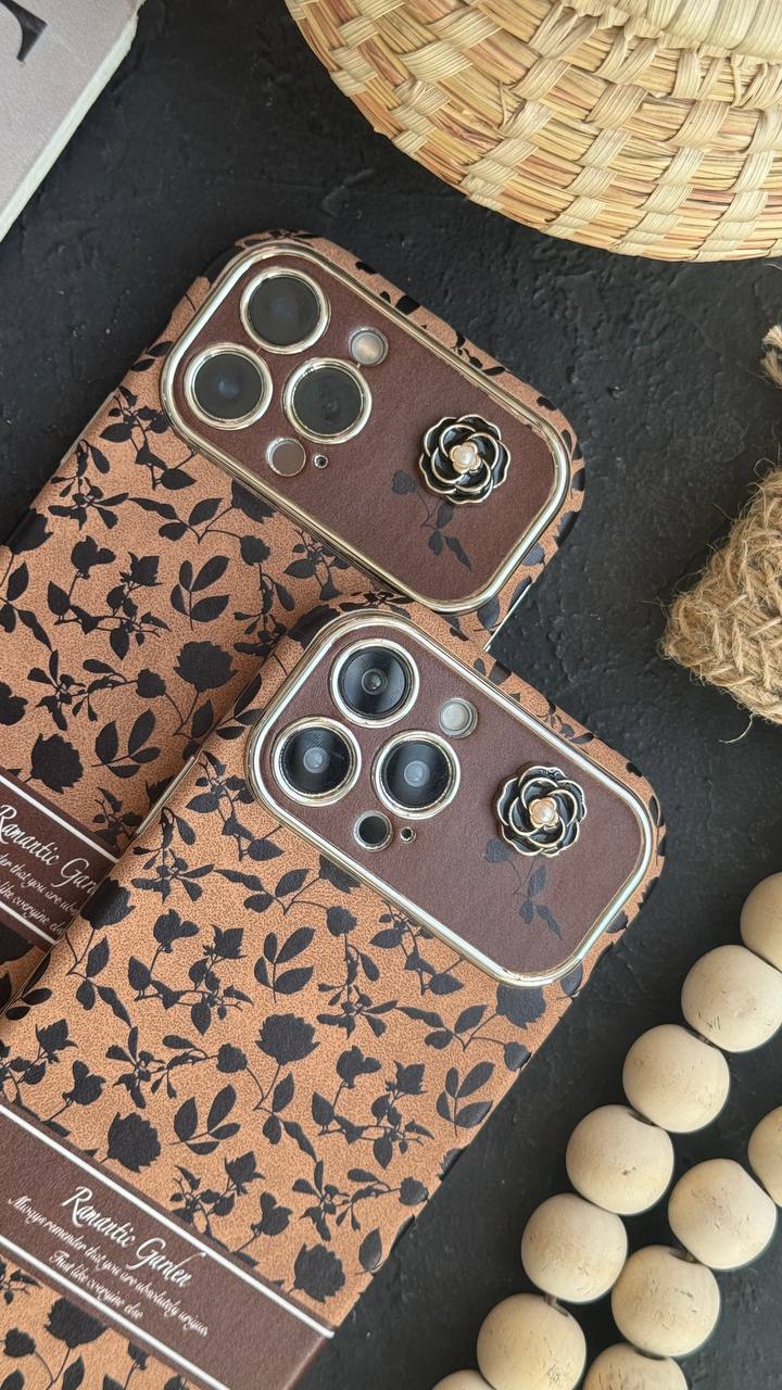 قاب موبایل آیفون گل رز رمانتیک گاردن قهوه ایC006077