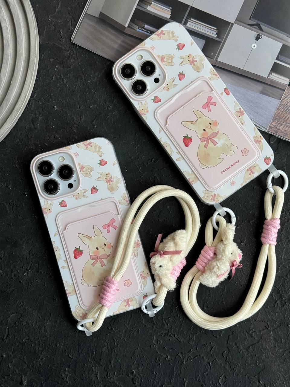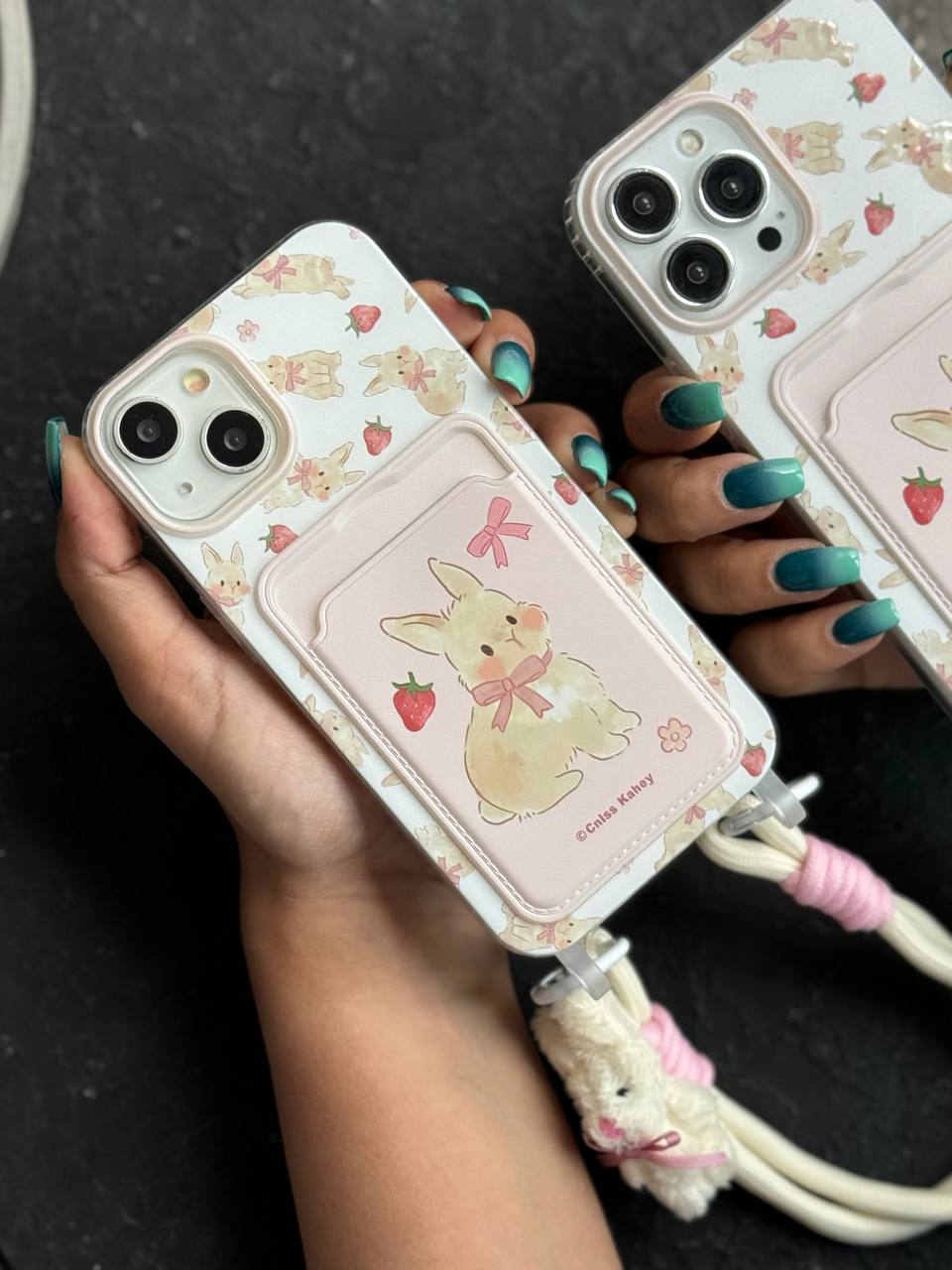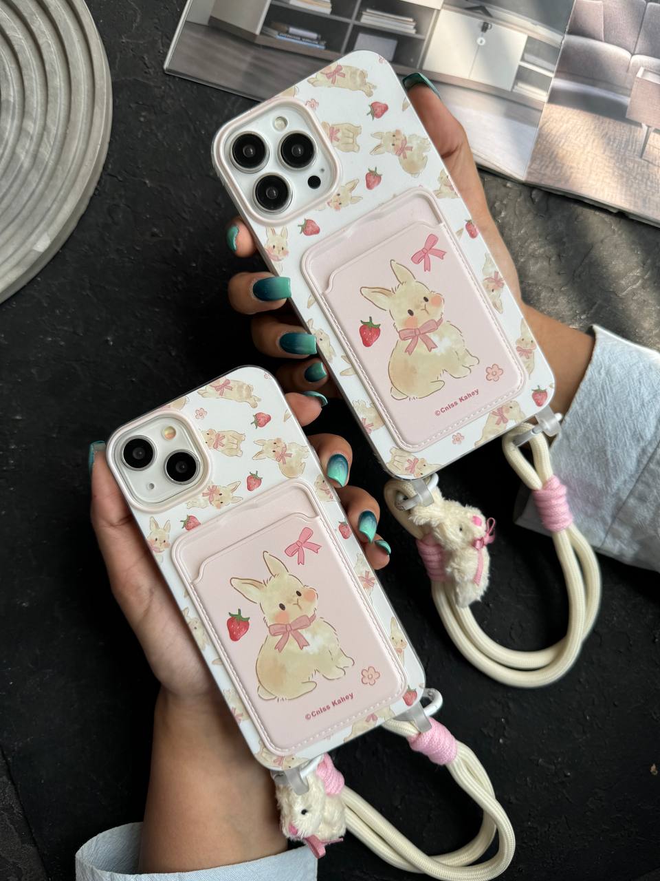 قاب موبایل آیفون خرگوش پاپیون صورتی بند عروسکی جاکارتیC005628