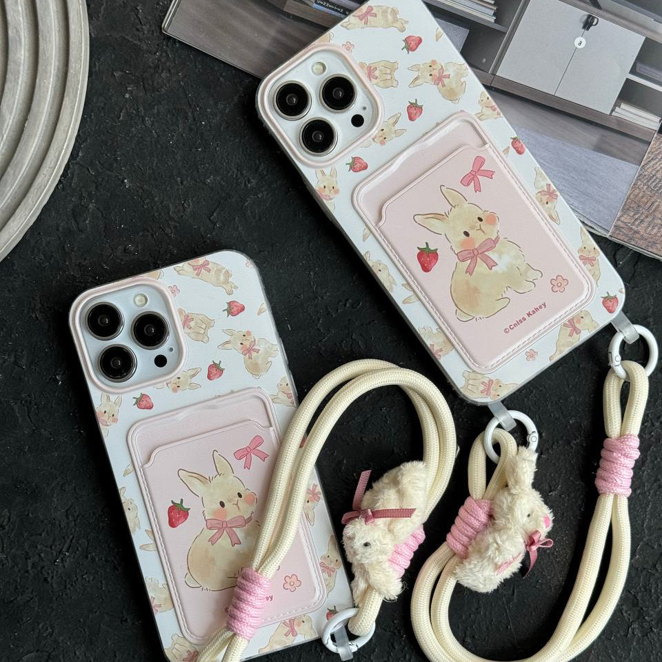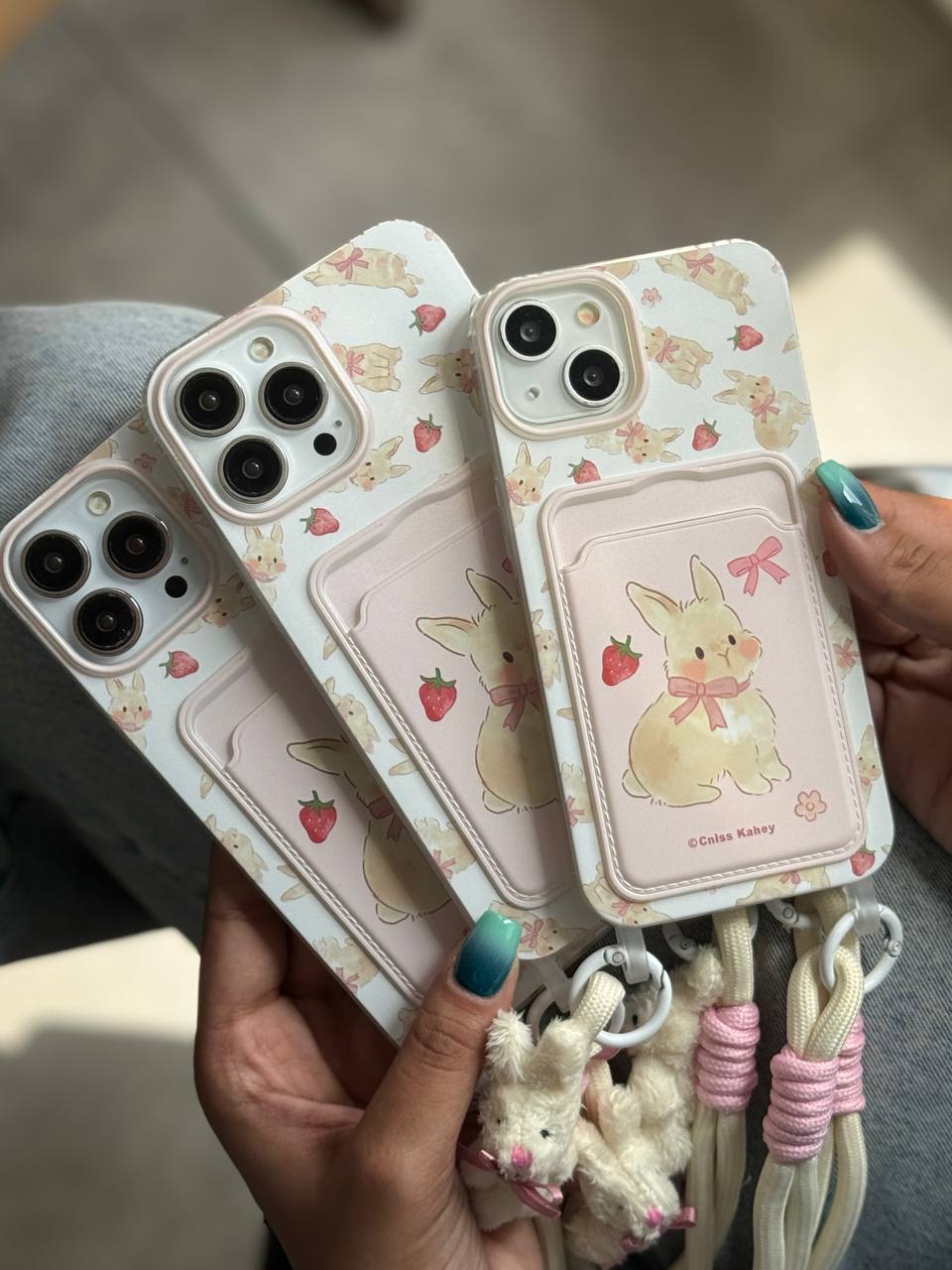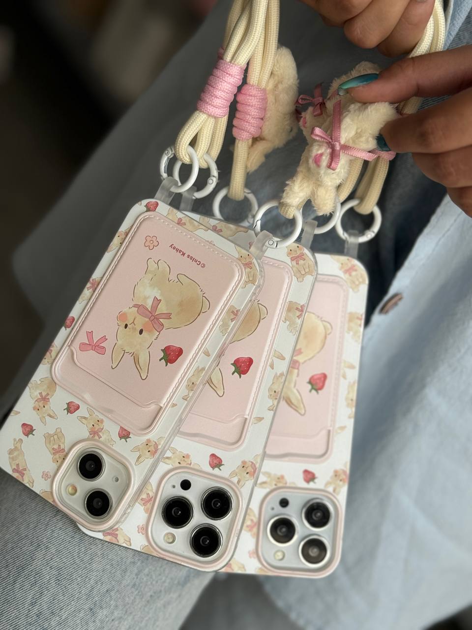قاب موبایل آیفون خرگوش پاپیون صورتی بند عروسکی جاکارتیC005628