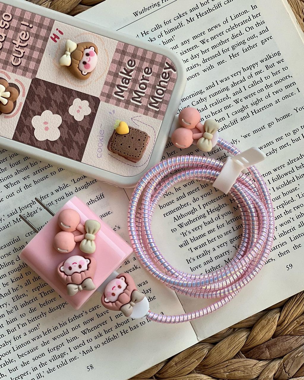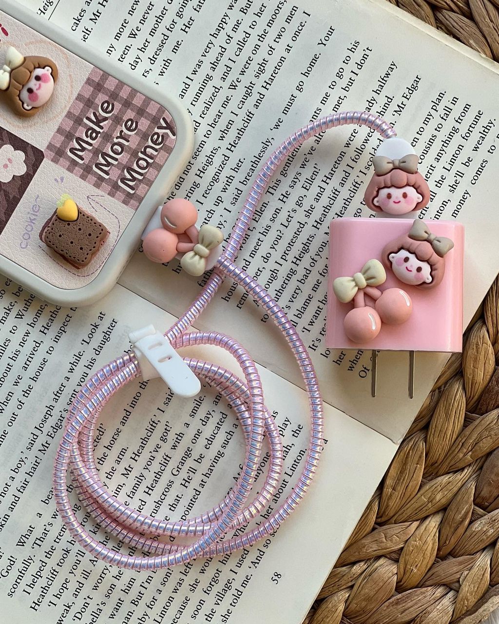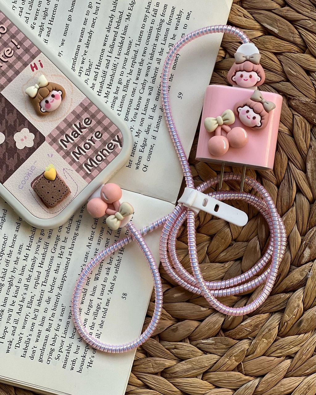 محافظ کابل دختر آلبالو برجسته روکش سیم + روکش آدابتور + دوعدد بست عروسکیP000121
