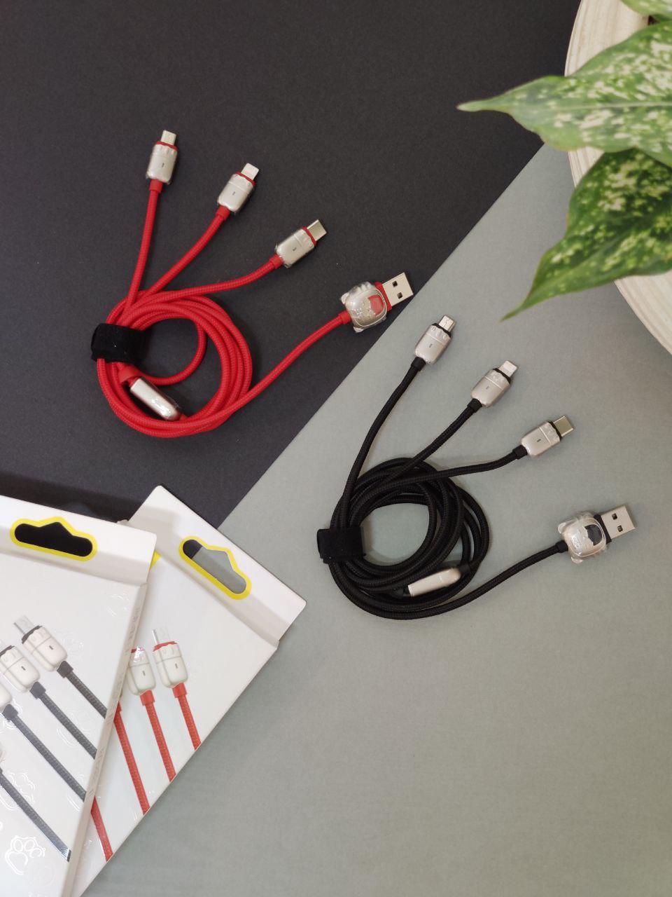 ✅دارای 3 سر micro, typeC, Lightening ✅فست شارژ 3/5 آمپر✅طول 120 سانت✅دو رنگ مشکی و قرمز✅روی کانکتورها چراغ داره✅امکان انتقال دیتا هم داره✅بسیار مقاوم با طول عمر زیاد✅مجهز به چیپست هوشمند جهت محافظت در برابر نوسانات ولتاژ و جریان برق
