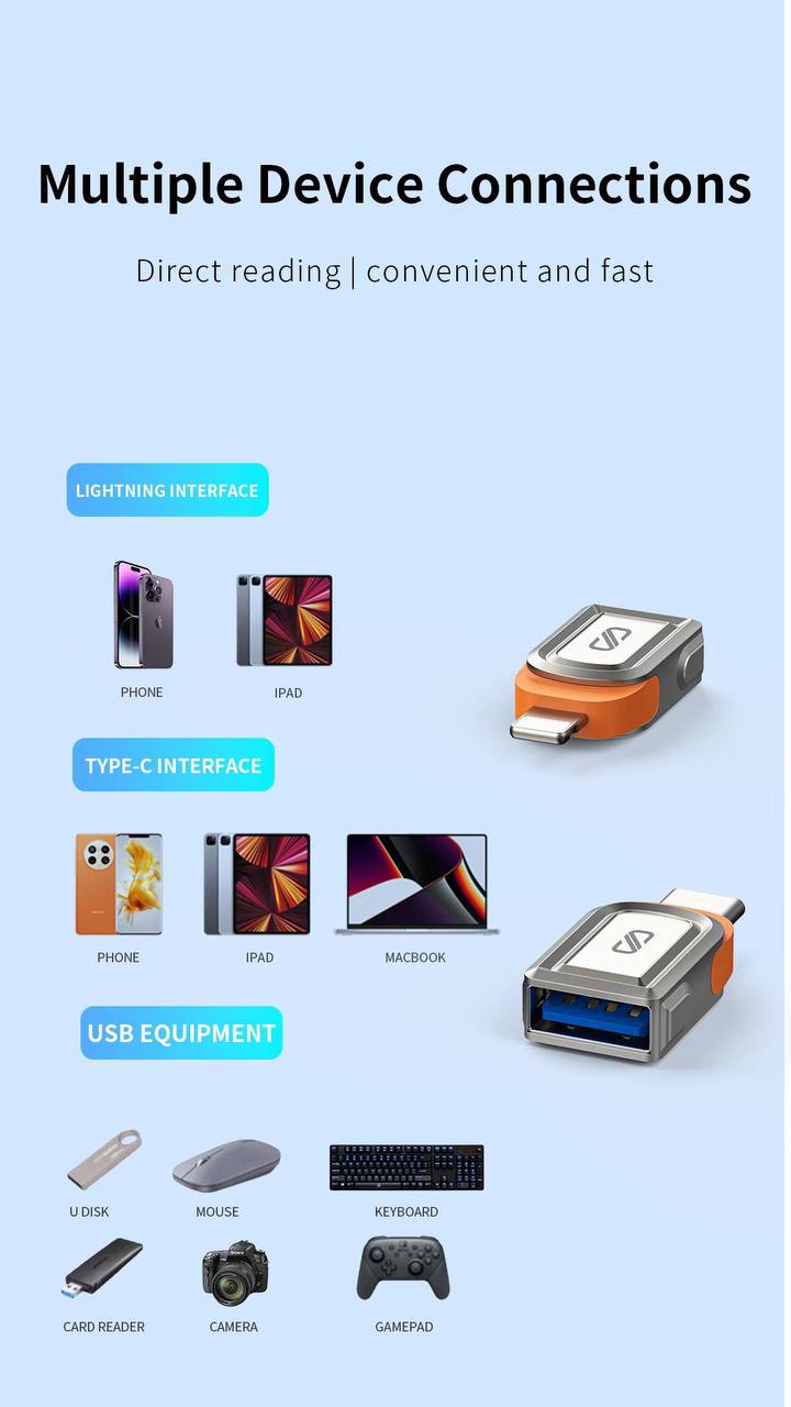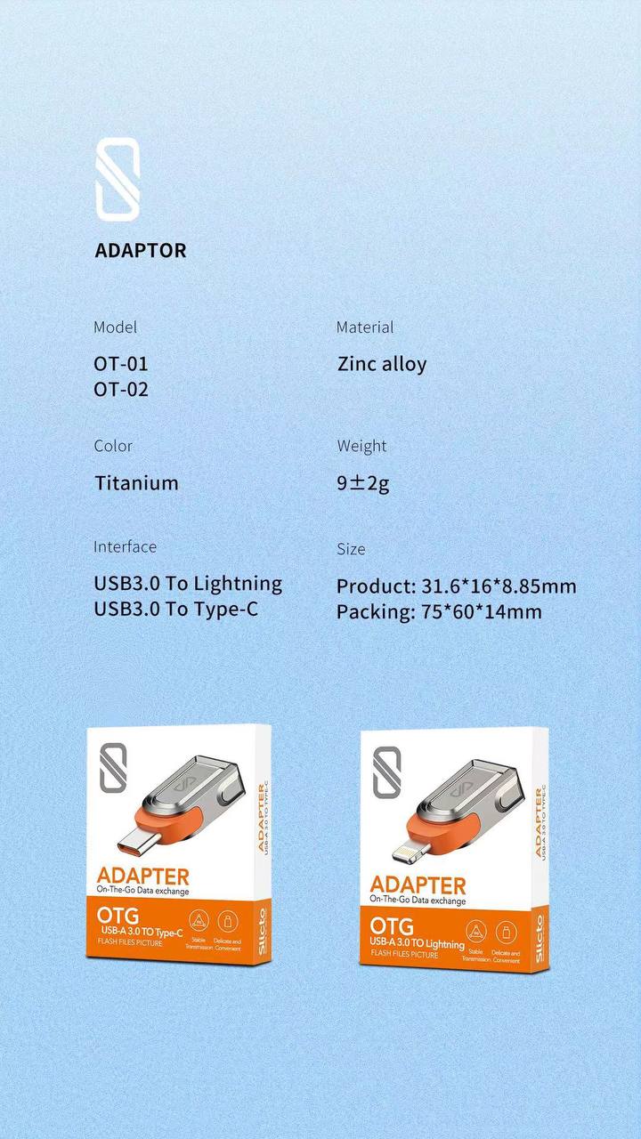 OTG lighting & typ ctitanium colorzinc aloy material usb 3✅بدنه فلزی با کیفیت✅قابلیت انتقال شارژ از یک گوشی به گوشی دیگر✅قابلیت انتقال دیتا با سرعت بالا✅قابلیت اتصال ، فلش ، موس ، کیبورد و ... به گوشی موبایلاز این تبدیل علاوه بر استفاده برای انتقال دیتا بین دستگاه اندوریدی و فلش مموری با سرعت بالا به واسطه درگاه USB 3.0 ، می توان موس و کیبورد بیسیم و سیم دار نیز به آن وصل نمود . 💥دیگر قابلیت این تبدیل انتقال شارژ از یک دستگاه به دستگاه دیگر می باشد که یک قابلیت بسیار کاربردی می باشد .