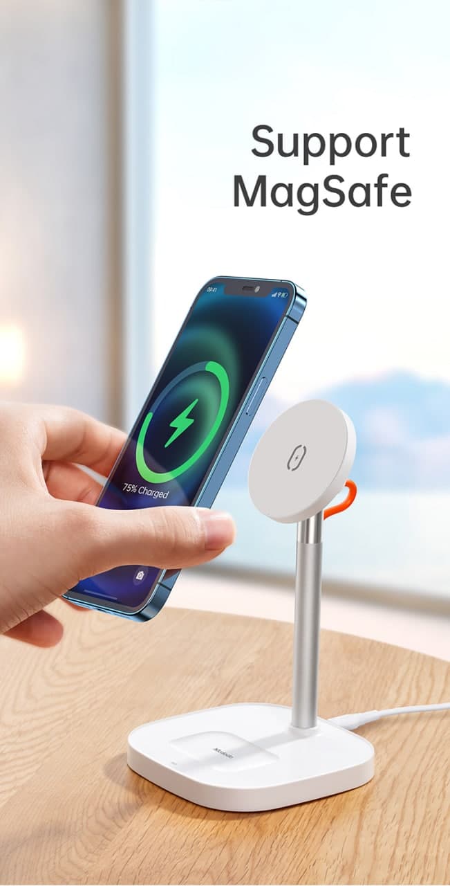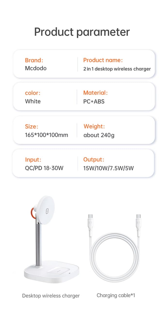🟣🔵🟢🟡پایه نگهدارنده رومیزی مک دودو با قابلیت شارژ بیسیم همزمان آیفون و ایرپاد🔸برند : Mcdodo☸️مدل : CH-7340✅قابلیت شارژ بیسیم 15W آیفون های سری 12 و 13✅قابلیت شارژ بیسیم ایرپادهای با قابلیت شارژ بیسیم✅دارای کابل شارژ PD TYPE-C✅کیفیت ساخت بالا و متریال فلز و ABS